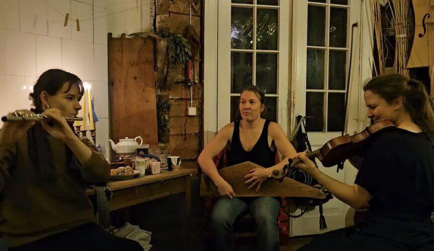 Sophie&Leanne are joined this year by Monika Väliste and is about to play a whole set of West Danish island Fanø south village Sønderho dances called Sønderhoning and also some north village Nordby dances…